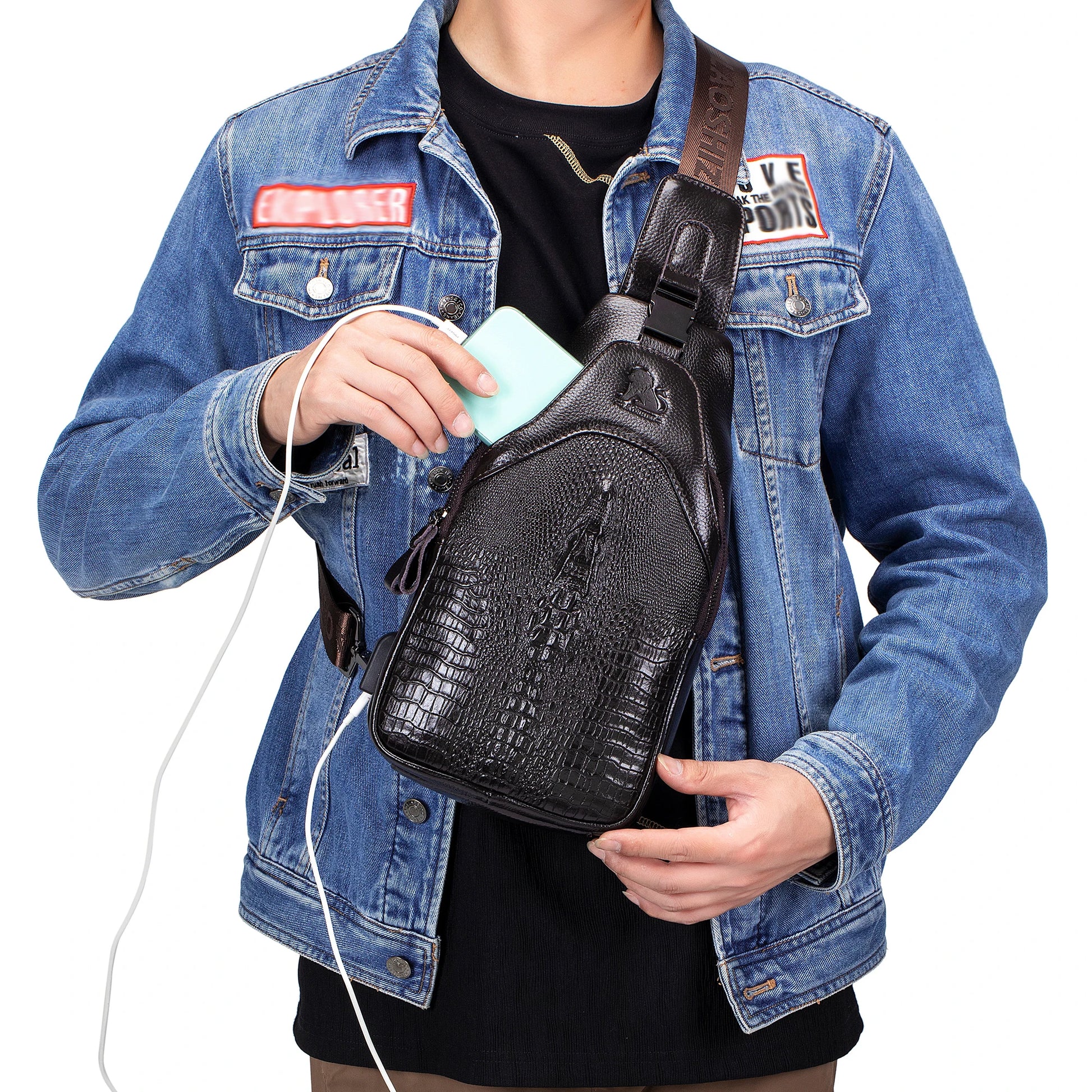 Adoptez le style vintage avec ce sac en cuir véritable LAOSHIZI, pensé pour les hommes modernes et organisés. Doté d’un design élégant à motif crocodile, ce sac bandoulière combine praticité et raffinement. Il est équipé de plusieurs compartiments intérieurs pour vos essentiels (téléphone, portefeuille, clés), ainsi que d’une poche USB intégrée pour recharger vos appareils en déplacement.